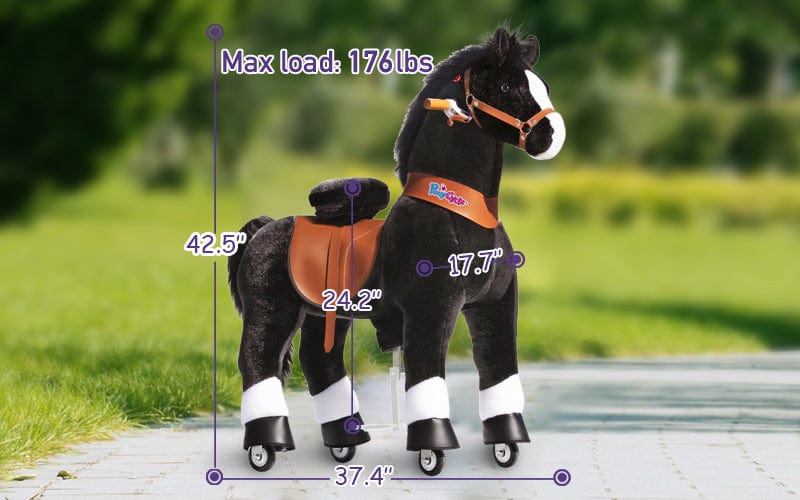 At a height of 42.5 ″, width of 17.7 ″ and length of 37.4 ″, the Model U Size 5 is perfect for age groups 7 to 12 and kids up to 65″ tall. It boasts an impressive weight limit of up to 176lbs — making the perfect PonyCycle® toy for teenagers (and even grown-ups within those limits who might be curious about a PonyCycle® toy for adults!).