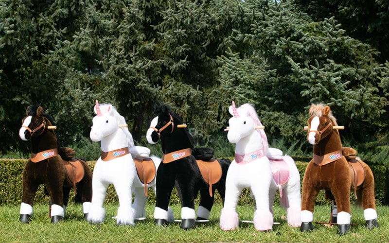 Choose from PonyCycle® Horse or PonyCycle® Unicorn in several color choices that include brown, chocolate brown, black or white body and corresponding mane colors (including pink mane option for PonyCycle Unicorn).